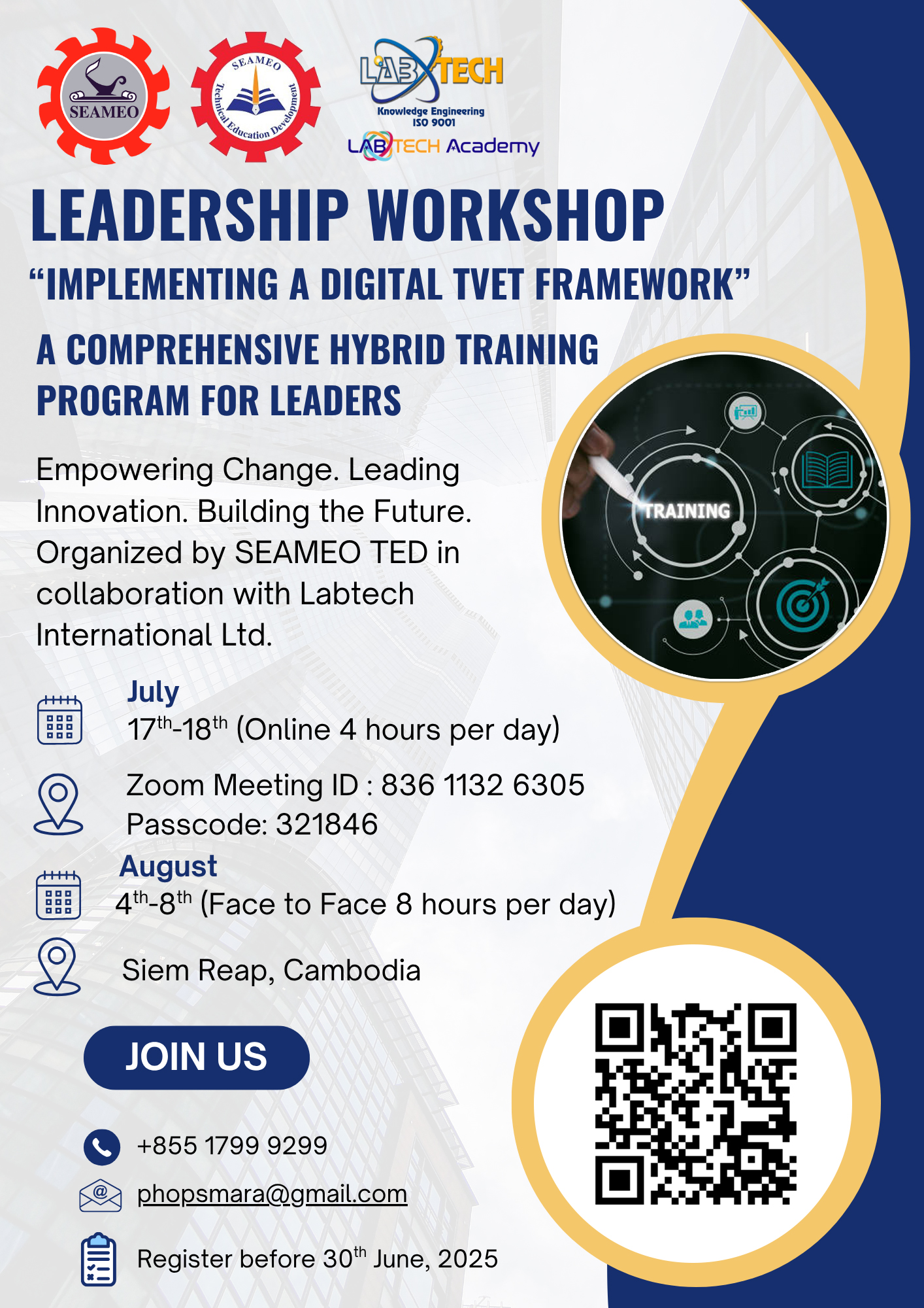 This workshop is not just a training—it’s an opportunity to become a catalyst of change and growth within your ministry or institution and the wider TVET ecosystem. Join a network of forward-thinking leaders across ASEAN and beyond who are ready to redefine the future of skills development through digital innovation.